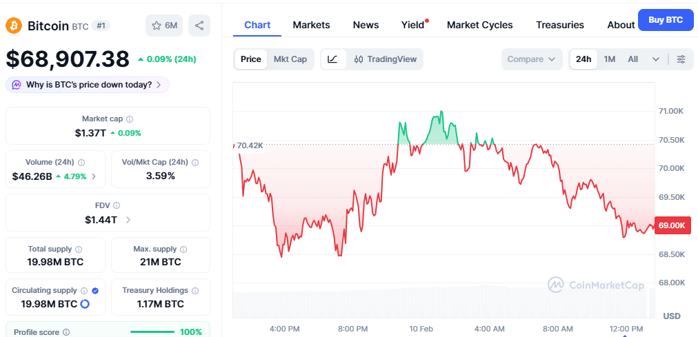 As of Feb 10, 2026, Bitcoin is trading around $69,700, according to CoinMarketCap. Price movement has slowed, volume feels lighter, and momentum has clearly paused. For many traders, this is the frustrating part of the cycle. Nothing seems to move, and waiting feels expensive.