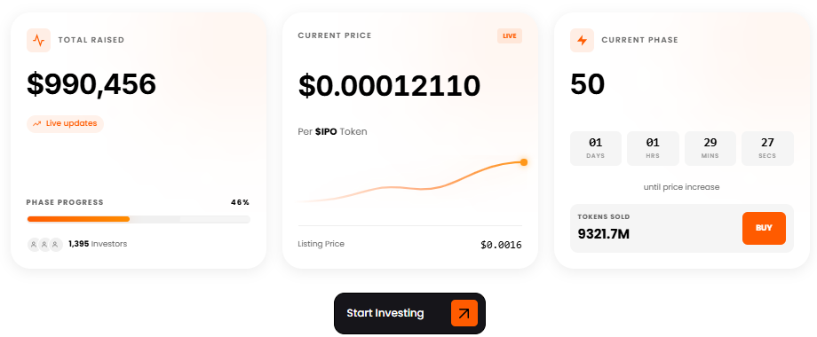 This is where the upside story comes in. The presale price currently sits around $0.00012110. At this level, even a small move later can translate into major growth. That’s why IPO Genie is often discussed in 500x–800x terms.