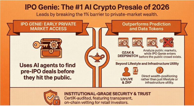At its current early-stage pricing, $IPO offers exposure to private-market opportunities most retail investors never see. Combine that with proven AI agents, audits, and real utility, and it’s easy to see why many analysts now view IPO Genie as the top crypto presale to watch in 2026.