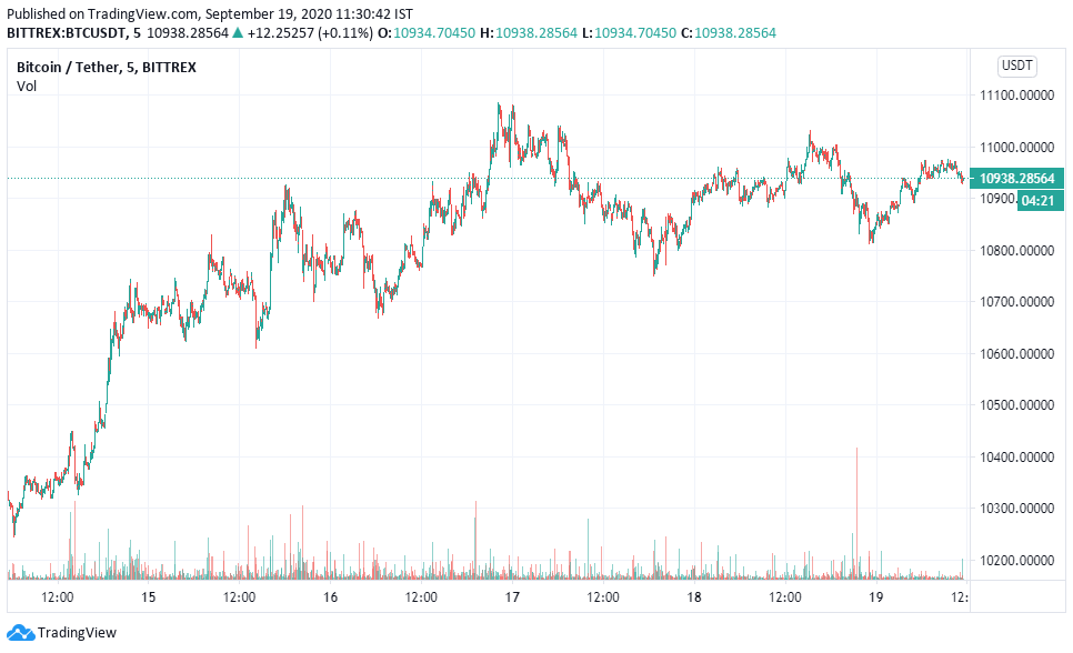 يُؤثر هذا الاتجاه أيضًا على السوق، حيث يشهد bitcoin حاليًا ضغط بيع أقل من المعتاد عندما يستقر سعره دون مستويات المقاومة الرئيسية. عند كتابة هذا التقرير، يتم تداول زوج BTC/USD عند 10,946 دولارًا أمريكيًا. وقد ظل Bitcoin متذبذبًا ضمن هذا النطاق السعري خلال الأيام القليلة الماضية.
