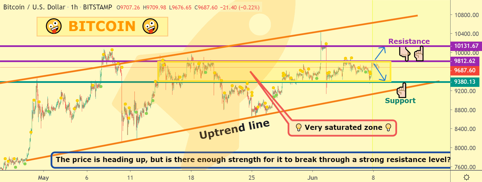 في الثامن من يونيو، اختبر سعر البيتكوين مستوى المقاومة عند 9800 دولار، والذي تبين أنهtronبما يكفي لإبقاء زوج التداول دونه.