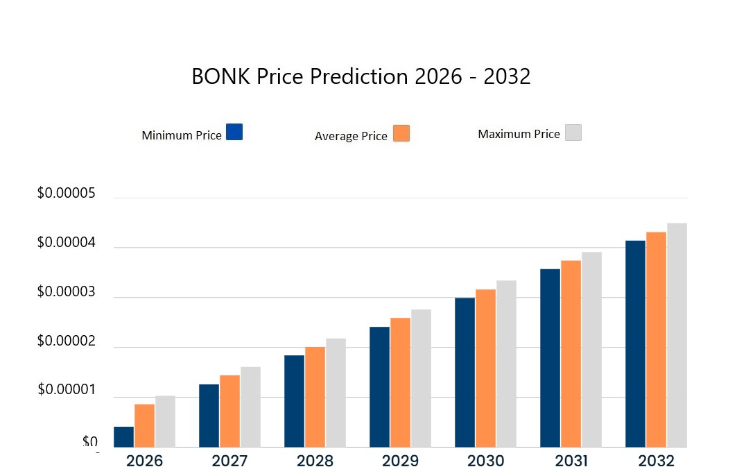 - في عام 2032، نتوقع أن يصل سعر Bonk إلى حد أقصى قدره 0.00004492 دولارًا أمريكيًا بمتوسط قدره 0.00004319 دولارًا أمريكيًا.