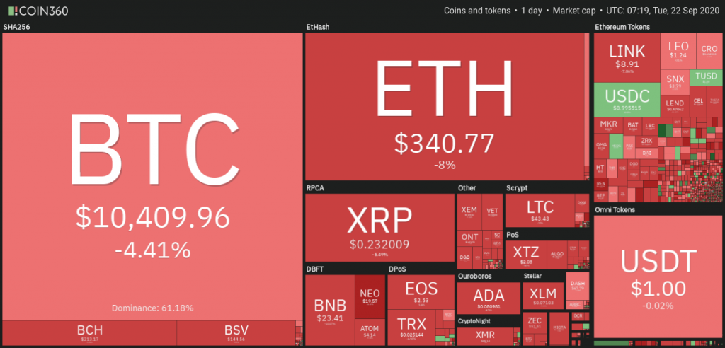 أدى انتعاش الدولار الأمريكي بشكل كبير إلى الانخفاض الأخير في سعر bitcoin والعملات الرقمية البديلة مثل ethereum ، بالإضافة إلى المخاوف من ركود اقتصادي مطول نتيجة لتزايد حالات الإصابة بفيروس كوفيد-19. ولا يزال زوج الإيثيريوم/الدولار الأمريكيdentقرب مستوى 340 دولارًا بعد محاولة فاشلة لاستعادة مكاسبه التي حققها في أغسطس.