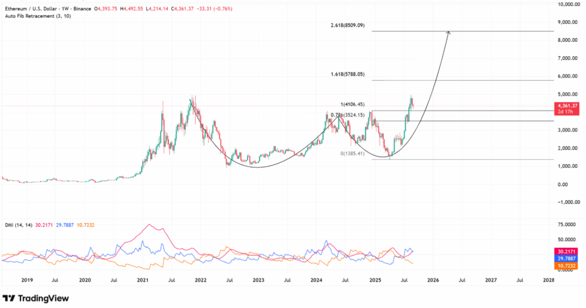 يتوقف مسار Ethereumفي سبتمبر على تجاوز مستوى المقاومة عند 4550 دولارًا. وفي حال اختراق هذا المستوى، سيتمكن إيثيريوم من تجاوز 5000 دولار، مع أهداف قصيرة المدى تتراوح بين 5300 و5800 دولار. ويشير المتفائلون إلى تدفقات صناديق المؤشرات المتداولة، وعمليات التخزين، وتحديثات Ethereum 2.0 كأسباب للارتفاع إلى 7000 دولار بحلول عام 2026.