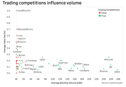 أعلنت منصة Cryptocompare أن Coinbase هي المنصة الأولى في مجال تداول العملات الرقمية، تليها مباشرةً Poloniex وBitstamp وbitFlyer وLiquid وiBit، حيث سجلت Coinbase 60.3 نقطة في المؤشر المرجعي. في المقابل، سجلت Poloniex وBitstamp وbitFlyer وLiquid وiBit على التوالي 59.9 و59.6 و57.2 و56.3 و56.0 نقطة.