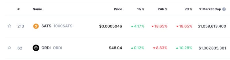 Through this approach, many popular assets have been issued on Bitcoin. The issuance method for these assets is fair minting, allowing anyone to mint a certain quantity of assets through a Bitcoin transaction. This issuance method provides participants with a fair opportunity and results in a decentralized distribution of assets, aligning more closely with the principles of decentralization. Most of these assets were issued starting in March, and as of today, some popular assets, such as $ORDI and $SATS, have market caps exceeding 1 billion USD, leading to significant wealth effects.