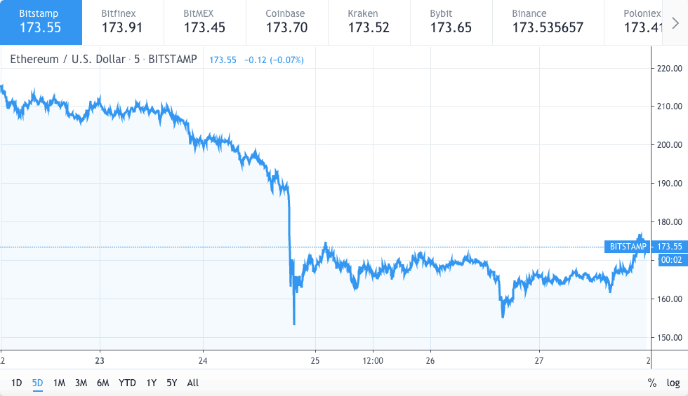 Ethereum price also has somewhat gained a bit momentum and is up at about seven percent (7%), about one hundred and seventy-three dollars ($173) at the time of writing.