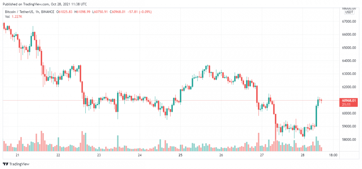The largest cryptocurrency, Bitcoin (BTC), has pushed back to the $61,000 area after facing a quick correction on Wednesday, which saw the price tank by almost $2,000 in a matter of minutes.
