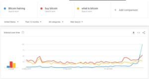 Google trends show Americans trending search that seems to be an omen of good fortune: “Bitcoin halving,” “Buy Bitcoin,” and “what is Bitcoin.” are skyrocketing, boding well for the bullish narrative.