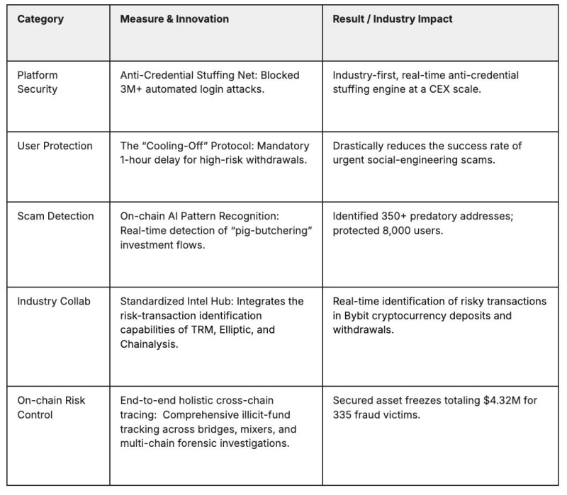 - AI-Driven Detection in Q4: Bybit’s proprietary AI algorithms identified 350 high-risk investment fraud addresses via on-chain data, shielding 8,000 users from potential withdrawal losses.