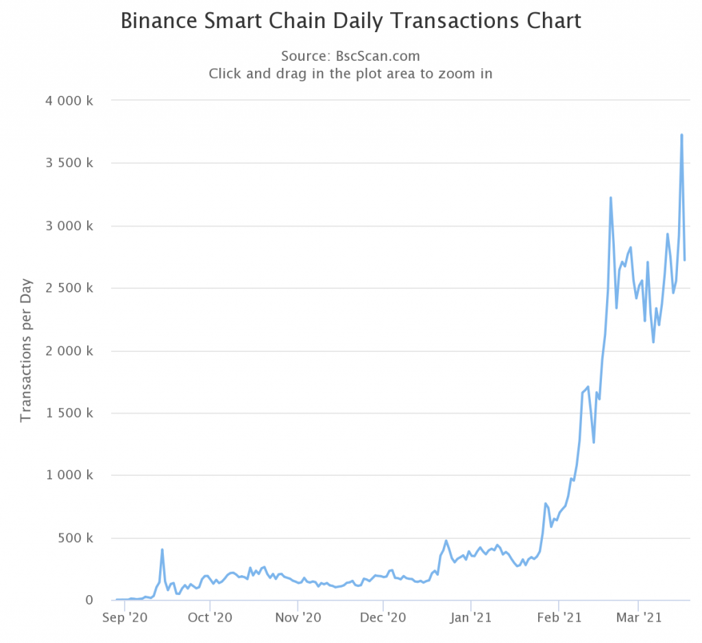 BSC, especially, is the preferred network for many projects that have migrated from Ethereum. This is evident as the transaction volume on BSC surpassed Ethereum in the wake of the network’s congestion. As at the 16th of March, the daily transaction count on BSC surpassed three million, while Ethereum settled about 1.3 million in the same day.