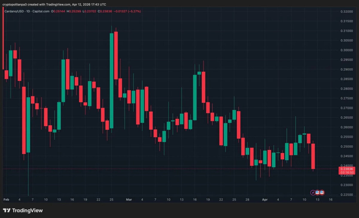 Cardano price analysis 1-day chart: Cardano struggles near $0.26 as bearish pressure threatens a drop toward $0.23 support