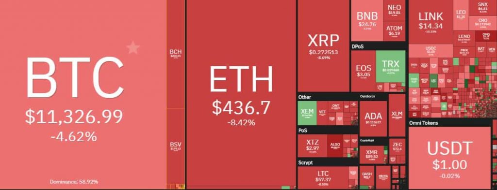The world’s leading crypto asset by market capitalization, Bitcoin lost about $700 after a rejection at $12,000. On the other hand, Ethereum plunged by a massive 15 percent, and has already plummeted another 8 percent as at press time. Moreover, Polkadot surpassed Chainlink to become the top 5 largest cryptocurrency by market cap following a 10 percent drop in the value of LINK.