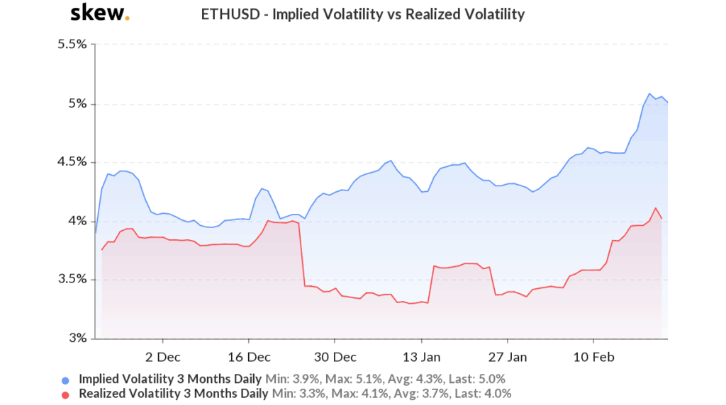 Die jüngste Volatilität der vergangenen Woche könnte den bisherigen Erfolg von ETH jedoch zunichtemachen. Die implizite und die realisierte Volatilität stiegen zuletzt auf 5 bzw. 4,1 Prozent, was zu Kursschwankungen führen könnte. Dieser leichte Abwärtstrend könnte verunsicherte Anleger abschrecken und einen Kursverfall auslösen.