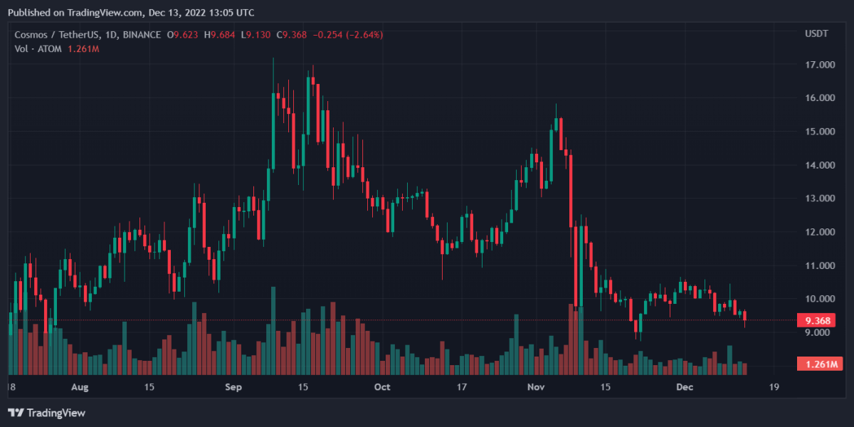 Cosmos ha estado a la baja debido a la tendencia negativa. Los últimos datos muestran una caída del 1,57 % en las últimas 24 horas. Los datos de siete días muestran una caída del 7,60 %. El precio de ATOM se sitúa actualmente en torno a los 9,38 $.