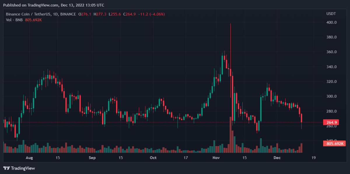 El rendimiento de Binance Coin ha disminuido a medida que continúa la recesión. Los últimos datos muestran una caída del 4,09 % en un día. Los datos de siete días muestran una caída del 7,96 %.