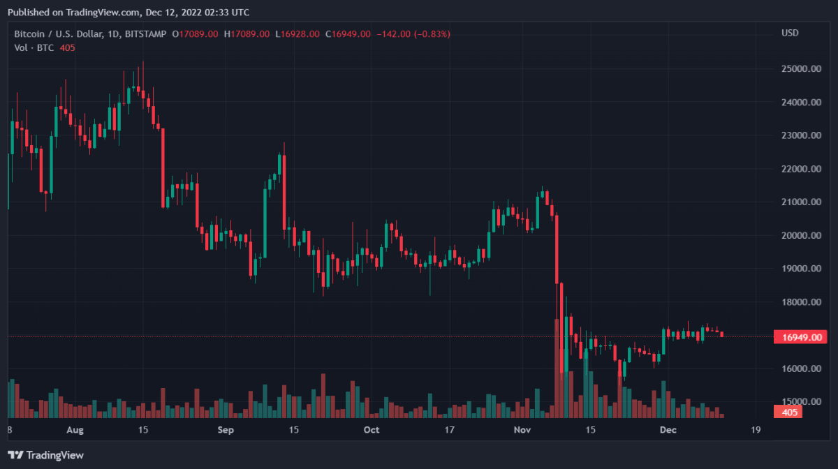El precio actual del BTC ronda los 16.947,28 dólares. La capitalización de mercado de Bitcoin se estima en 325.918.676.323 dólares. El volumen de negociación de Bitcoin es de aproximadamente 15.808.473.520 dólares.