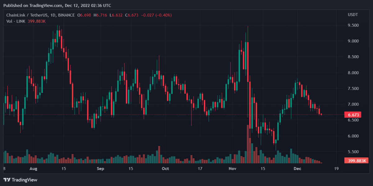 Chainlinkcontinúa su tendencia negativa. Los últimos datos muestran una caída del 2,89 % en las últimas 24 horas y del 11,18 % en los últimos siete días. El precio de LINK se sitúa actualmente en torno a los 6,68 $.