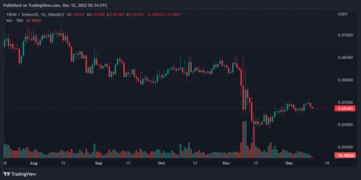 Tron no se encuentra en mejor situación que otras criptomonedas del mercado. Los últimos datos muestran una caída del 2,17 % en el último día. En los últimos siete días, ha subido un 0,79 %. El precio de TRX se sitúa actualmente en torno a los 0,05372 $.