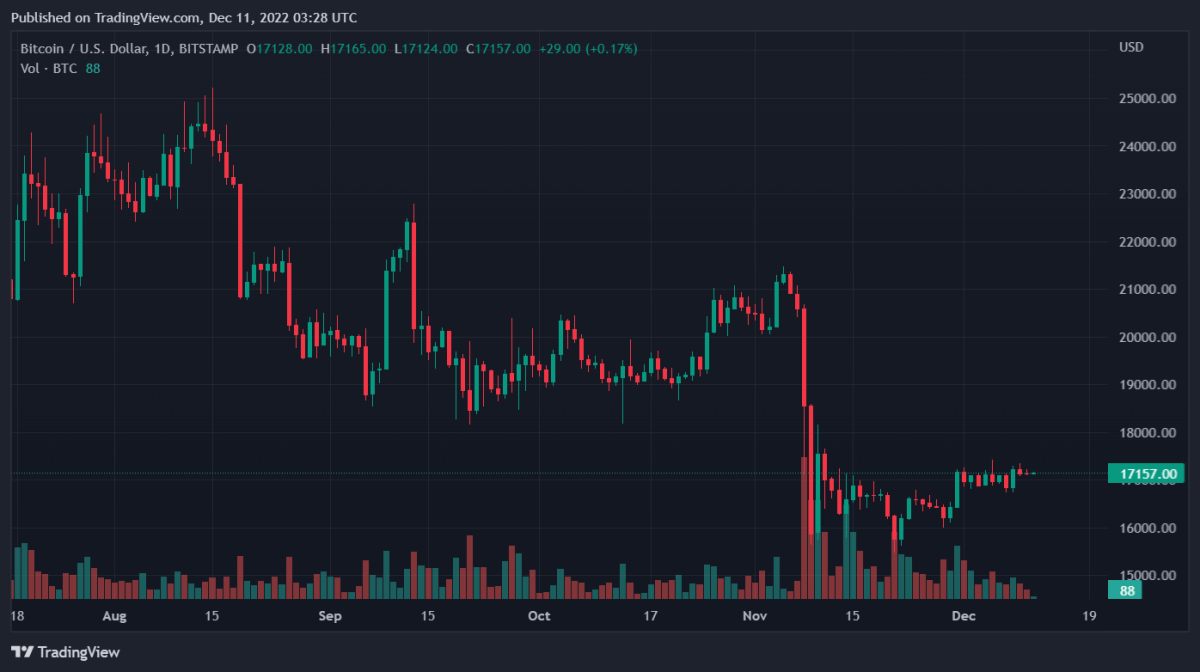 El precio actual de BTC ronda los $17,159.78. La capitalización de mercado de Bitcoin se estima en $329,989,606,102. El volumen de negociación de Bitcoin en 24 horas es de aproximadamente $12,430,578,661.