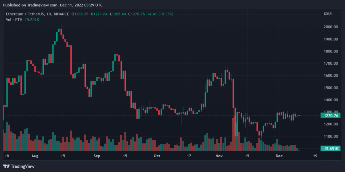 El precio actual de ETH ronda los $1,270,54. Su capitalización de mercado se estima en $155,480,476,010. Su volumen de negociación en 24 horas es de aproximadamente $3,168,445,066.