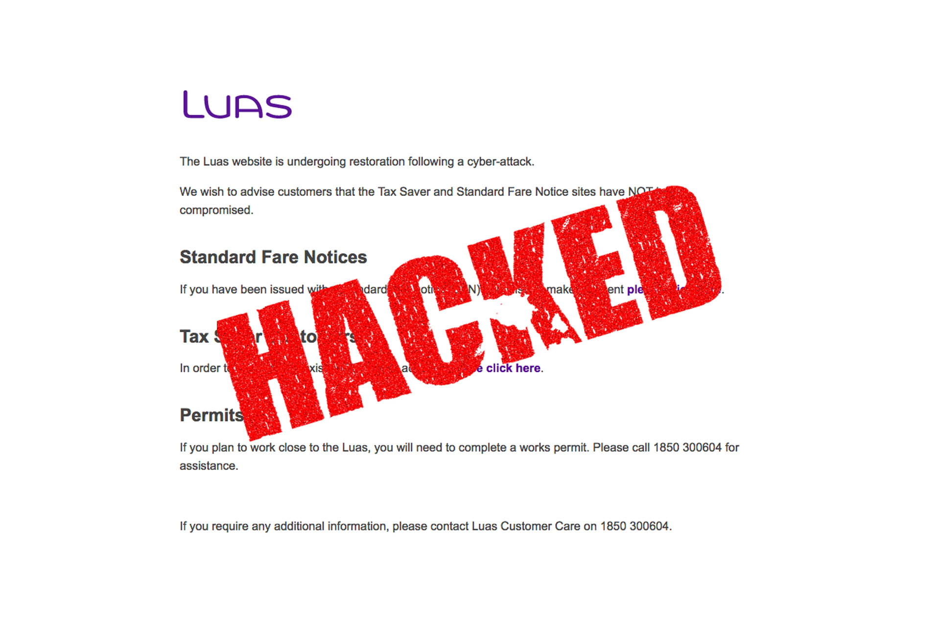 El sitio web de Luas fue comprometido esta mañana y se publicó un mensaje malicioso en la página de inicio. La empresa de TI que lo administra ha dado de baja el sitio web y sus técnicos están trabajando en ello. Se informa a Luas que la resolución de este problema podría tardar un día.