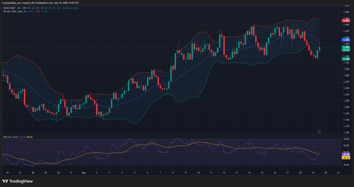 Análisis del precio del protocolo NEAR (gráfico de 1 día): NEAR se recupera hasta los 1,36 dólares tras la caída a 1,32 dólares