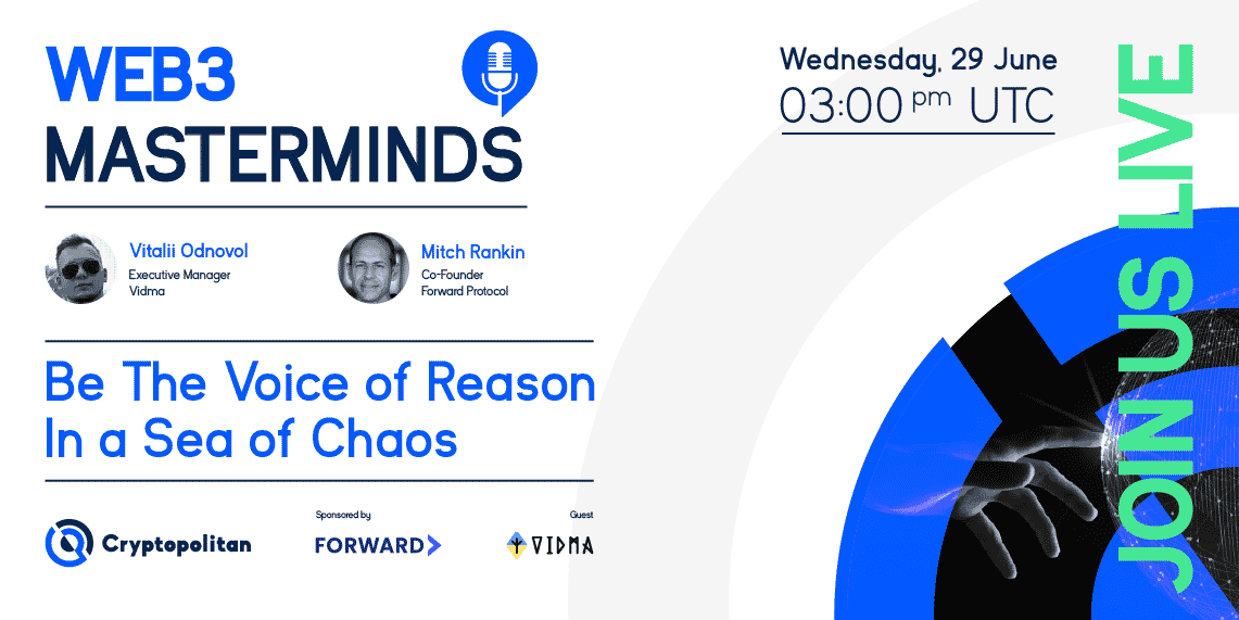 Web3 Masterminds es un programa de entrevistas en vivo sobre criptomonedas presentado por Cryptopolitan y patrocinado por Forward Protocol, una plataforma tecnológica que ofrece kits de herramientas blockchain rentables que conectan la economía impulsada por el valor.