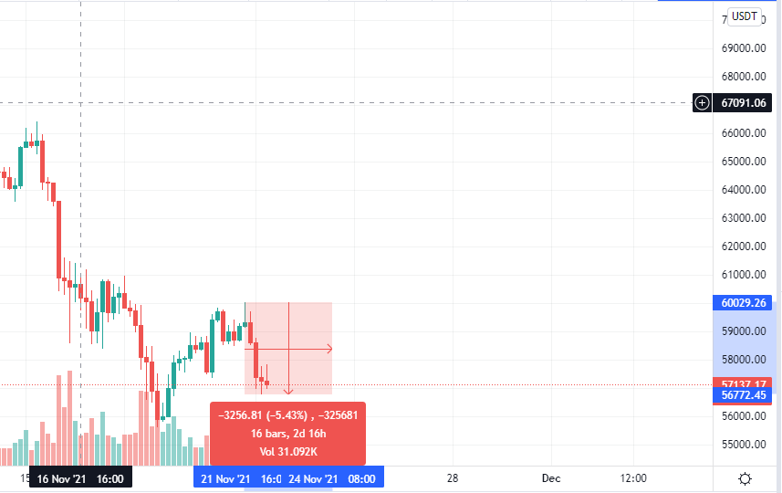 Depuis le 18 novembre, la plus importante cryptomonnaie se négocie sous la barre des 60 000 $. Plus tôt dans la journée, le prix du Bitcoin (BTC) a atteint ce niveau, mais il s'est heurté à une forte résistance et n'a pas réussi à s'y maintenir.