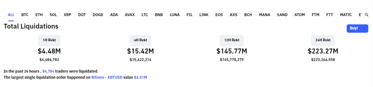 - L'ensemble du marché a chuté de plus de 2 %, sans liquidation, atteignant 223 millions de dollars au cours des dernières 24 heures.