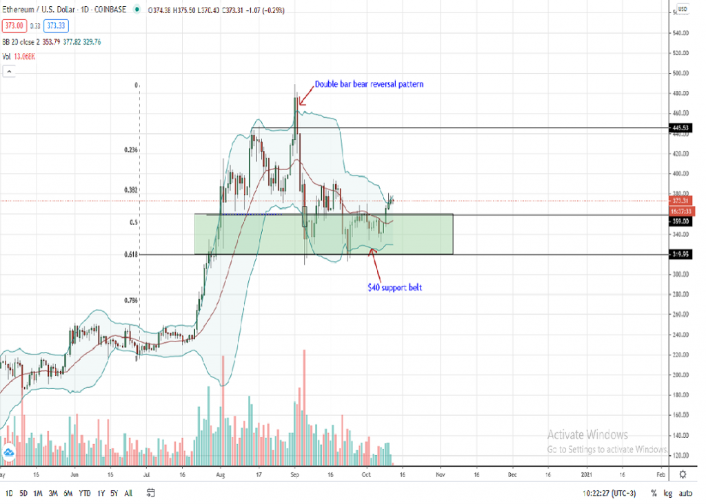 Cependant, pour les traders réticents au risque, une cassure définitive au-dessus des sommets du 10 octobre, à 380 $, pourrait voir les prix de l'ETH s'envoler vers les 400 $.