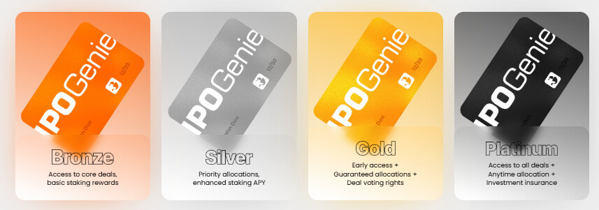 The biggest compounding layer is tiered access. IPO Genie runs Bronze, Silver, Gold, and Platinum tiers. The more $IPO you hold, the more exclusive deals and priority access you unlock.