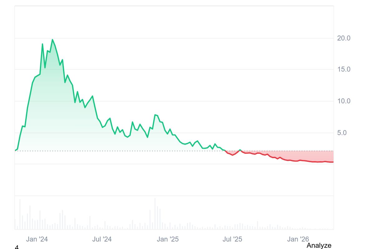 - Nel gennaio 2025, il prezzo di TIA è sceso ulteriormente, registrando un minimo vicino a 3,8 dollari.