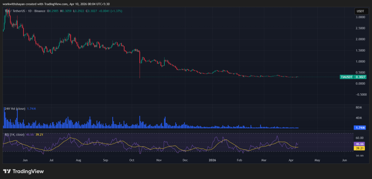 - L'analisi del prezzo TIA mostra una pressione ribassista verso $ 0,3