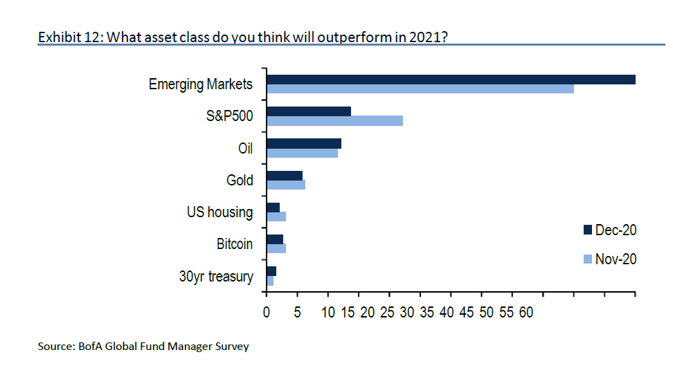Bitcoin 회사채와 금을 제치고 가장 많은 투자자들이 몰린 자산으로 꼽혔습니다.dent중 회사채를 긍정적으로 평가한 사람은 11%에 불과했고, 금에 대한 평가는 5% 미만이었습니다. 하지만 많은dent는 금이 내년에 더 나은 성과를 낼 것으로 예상했습니다. 약 7%가 금이 2021년에 더 높은 수익률을 보일 것이라고 답한 반면, Bitcoin에 대해서는 5% 미만이 같은 의견을 보였습니다.