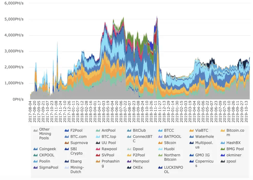 전체 해시레이트는 크게 변하지 않은 것으로 보입니다. 하지만 공개되지 않은 해시레이트의 양은 상당히 증가했습니다.