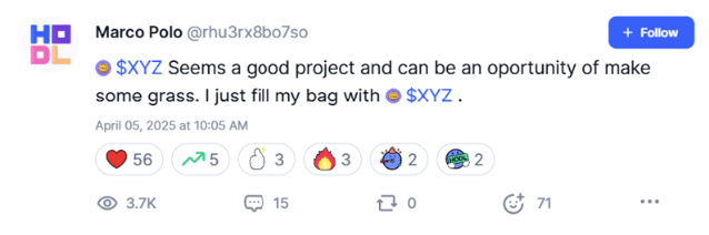 XYZ는 유명 암호화폐 인플루언서들의 주목을 받았습니다. DanjoCapitalMaster 는 최근 XYZVerse를 "대박 기회"라고 칭하며 프로젝트에 대한 지지를 표명했습니다.