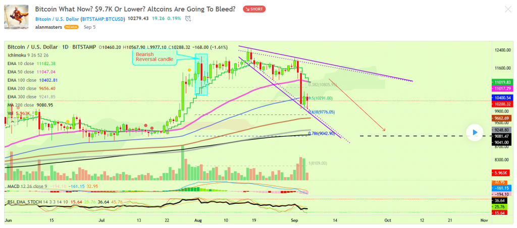 Bitcoin 가격이 지난 2주 동안 거의 21% 하락했습니다. BTC/USD 쌍은 9월 5일 최저치인 9,850달러를 기록한 후 소폭 반등하여 10,200달러 수준을 넘어섰습니다 . 이러한 변동적인 가격 움직임은 많은 투자자들이 '바트 패턴'이라고 부르는 현상을 만들어냈습니다.