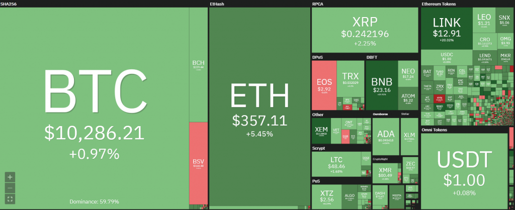 암호화폐의 제왕 비트코인은 격동의 주말을 간신히 버텨내며 10,200달러 선을 간신히 유지하고 있습니다. 주말 차트에는 하락 꼬리를 가진 캔들이 주를 이루고 있습니다. 다른 암호화폐들의 상황도 좋지 않습니다. 이더리움은 지난 며칠간 꾸준히 하락하며 300달러까지 떨어졌습니다. 많은 암호화폐 투자자들은 급성장하는 탈중앙화 DeFi 시장이 거품 단계에 빠르게 접어들고 있다는 점에 우려를 표하고 있습니다. 그렇다면 이러한 상황이 Bitcoin 가격에 어떤 영향을 미칠까요? 함께 알아보겠습니다.
