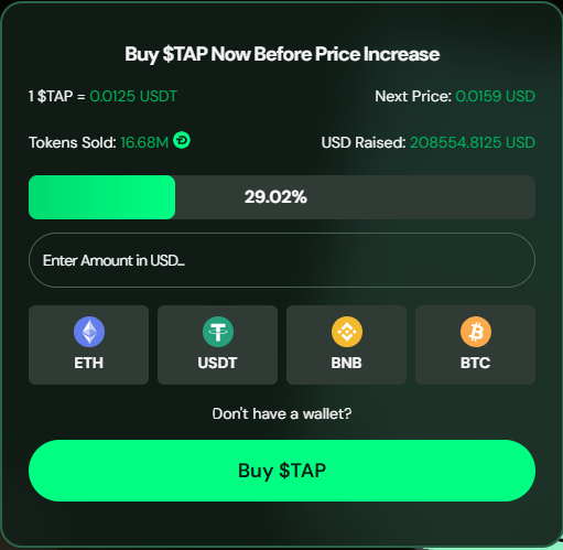 디지탭(Digitap, $TAP) 과는 극명한 대조를 이룹니다 . 디지탭은 사전 판매에서 이미 1,600만 개 이상의 토큰을 판매했으며, 속도를 늦출 기미를 보이지 않고 있습니다.