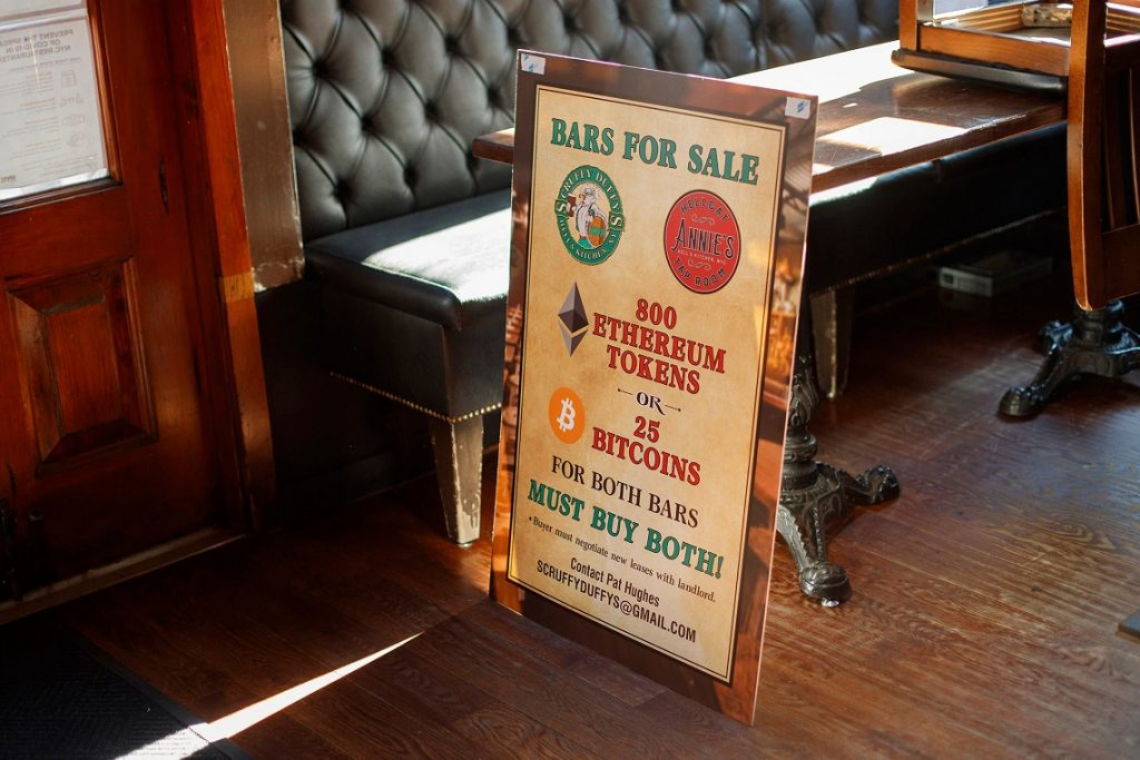 “I’m hoping to catch one of these crypto dudes who always wanted to own a bar,” said Hughes, referring to crypto as decentralized, global, and a “hot currency.”