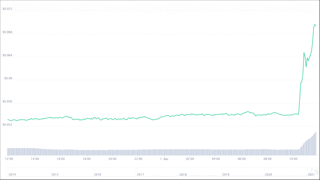 Seja qual for o motivo do tweet de Elon Musk, a criptomoeda que virou meme ganhou destaque. O preço do Dogecoin disparou logo após a mensagem do fundador da SpaceX. No momento da publicação desta notícia, a criptomoeda estava cotada a US$ 0,06952 no Coinmarketcap, representando um aumento de cerca de 32% em seu valor nas últimas 24 horas. O DOGE também acumula alta de mais de 30% no gráfico semanal.