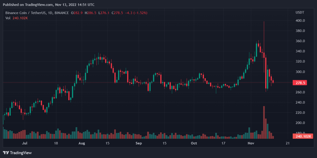 O preço atual do BNB está na faixa de US$ 278,61. O valor de mercado dessa criptomoeda é estimado em US$ 44.569.982.676. O volume de negociação nas últimas 24 horas foi de aproximadamente US$ 2.150.121.968.