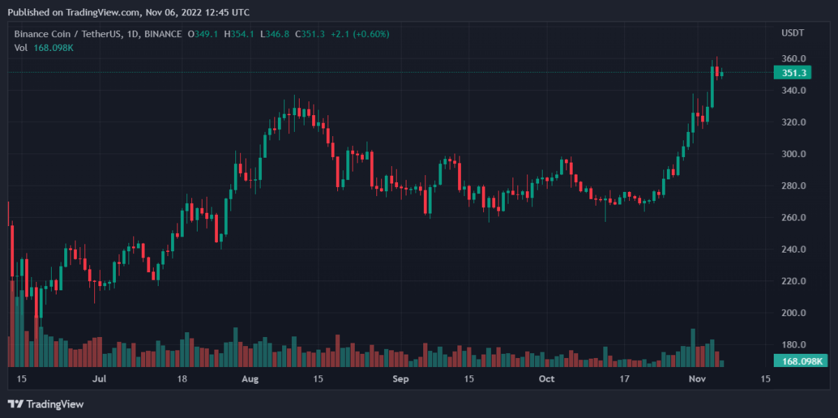O valor de mercado do BNB está atualmente na faixa de US$ 351,46. Estima-se que a capitalização de mercado dessa criptomoeda seja de US$ 56.287.257.235. O volume de negociação nas últimas 24 horas foi de aproximadamente US$ 1.071.045.489.