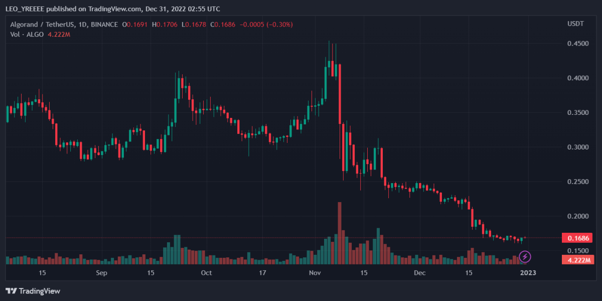Algorand manteve-se em tendência de alta, continuando atraco fluxo de capital. Os dados mais recentes mostram uma valorização de 2,65% no último dia. Nos últimos sete dias, a desvalorização foi de 0,86%. O preço atual da ALGO está em torno de US$ 0,1688.