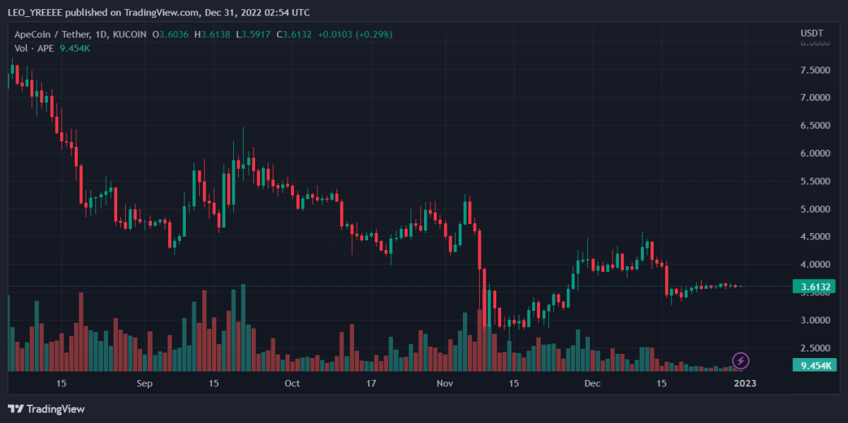 A ApeCoin também vem sofrendo perdas devido à tendência de baixa do mercado. Os dados mais recentes mostram uma queda de 0,84% em um único dia. Os dados semanais indicam um declínio de 0,37%. O preço da APE está atualmente na faixa de US$ 3,61.