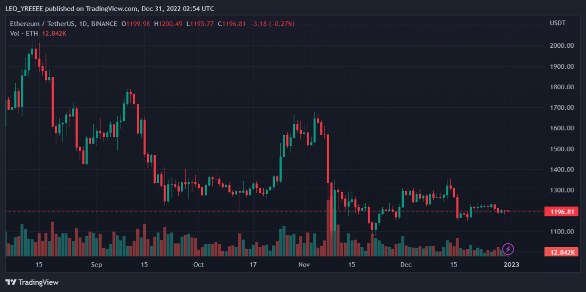 O preço atual do ETH está na faixa de US$ 1.197,23. O valor de mercado dessa moeda é estimado em US$ 146.509.195.083. O volume de negociação nas últimas 24 horas foi de aproximadamente US$ 4.082.685.885.
