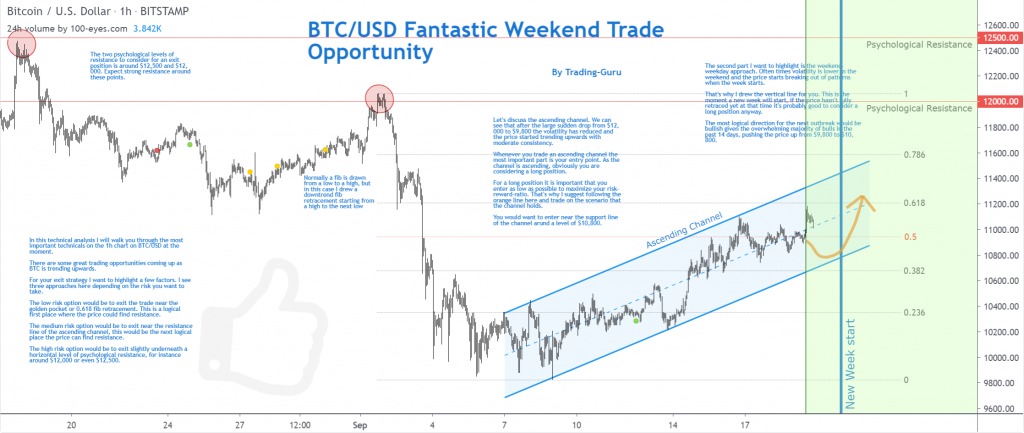 O analista Trading Guru, do TradingView, acredita que o par BTC/USD subirá em direção ao nível de US$ 11.200 após observar uma correção. O analista destacou um canal paralelo ascendente, explicando que o preço da criptomoeda ainda corre o risco de cair para a marca de US$ 10.800. É nesse ponto que se encontra o limite inferior do canal ascendente. A expectativa é que a criptomoeda suba em direção ao nível de US$ 11.200.