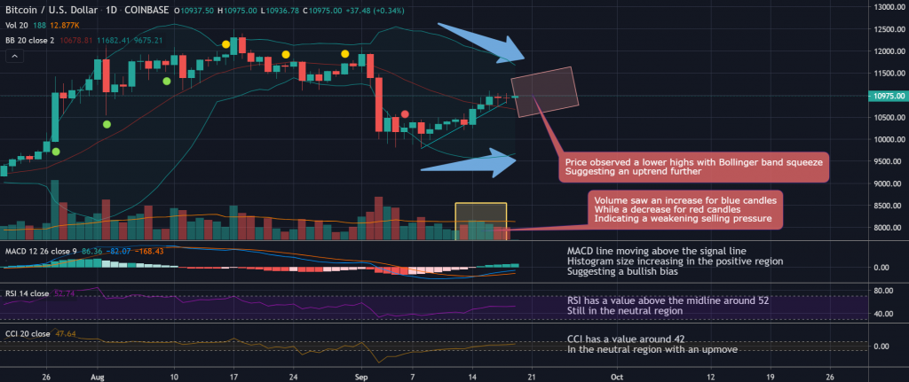 No dia 19 de setembro, o preço Bitcoin Analistas de criptomoedas no TradingView esperam que a principal criptomoeda suba para perto de US$ 11.300, após uma breve correção de preço.