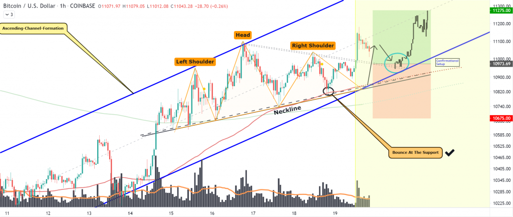 O analista Vince Prince, do TradingView, acredita que o par BTC/USD subirá em direção à marca de US$ 11.300 em breve. O analista destacou um padrão de ombro-cabeça-ombro para a criptomoeda no gráfico de 1 hora.